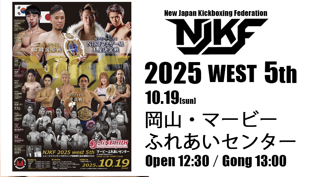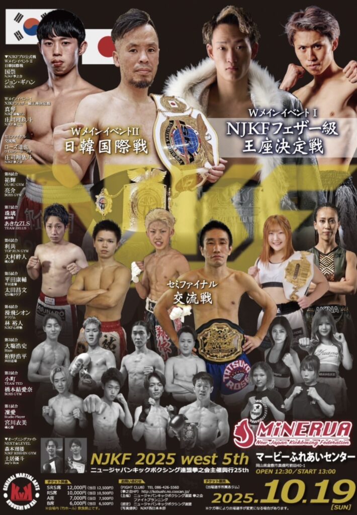10月19日(日)倉敷市・マービーふれあいセンターにて『NJKF拳之会主催興行25th ~ NJKF2025 west 5th ~』が開催される。