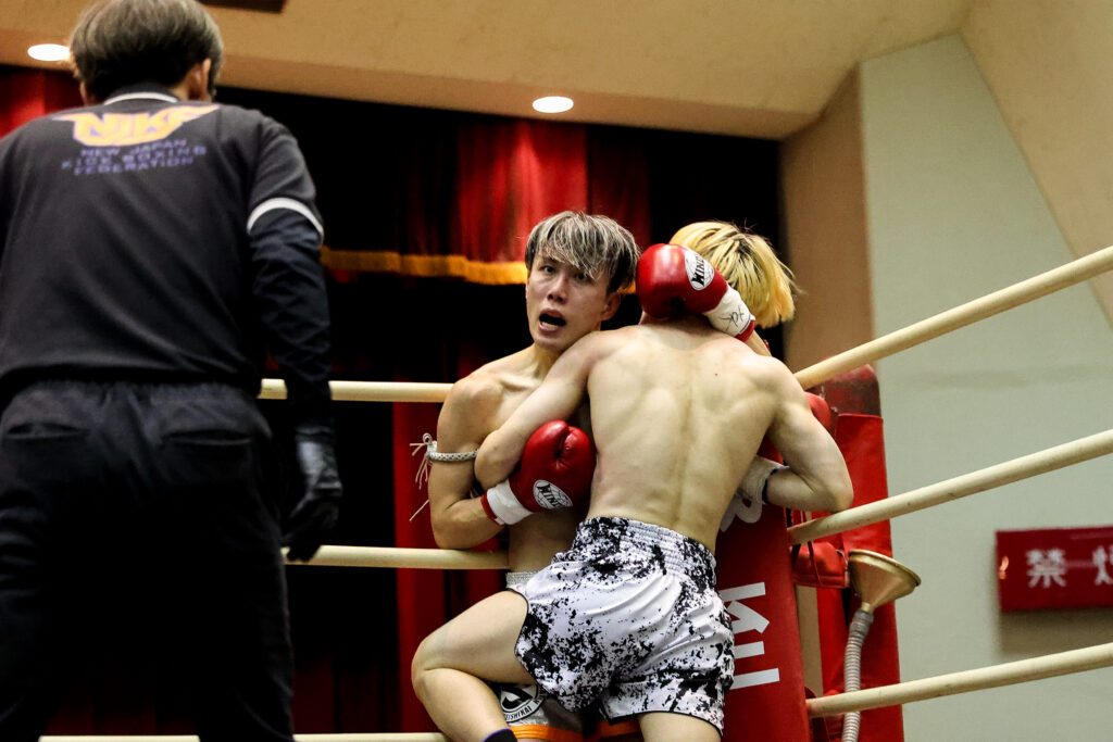 4R 佐藤は首相撲を中心に攻めつつ、坂本はパンチでこれを迎え打つ構図が続いた。坂本のノーモーションのストレートが数回佐藤の顔面を捉え顎が上がるシーンが見られた。